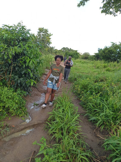 I walked with her up the hill until we reached the top, and I asked her to rest a little before we continued. We could now see our destination, about a kilometre away. The path was now broader and more straightforward. Three hundred metres in, what we thought was our destination, wasn’t. One of the staff at the farm directed us to turn left into some more beaten bush and shrubland. Lillian almost cried.
