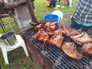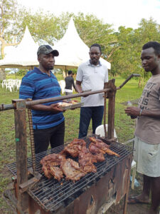It was time for some nyama choma. As you can imagine, the team I moved with had no time selling face regarding meat issues. I will leave the rest to your imagination. We all received large portions of roasted goat meat, chicken, and bottled water. Chris and Nelson didn’t seem to agree.