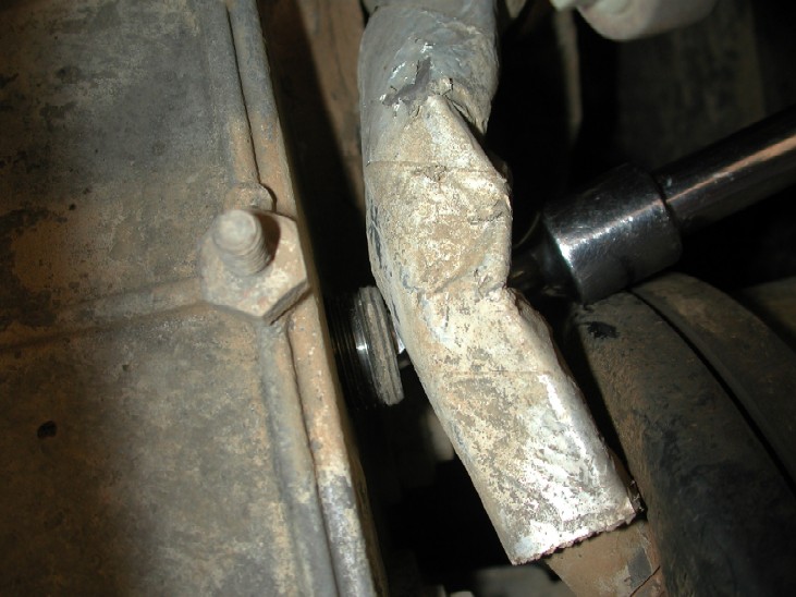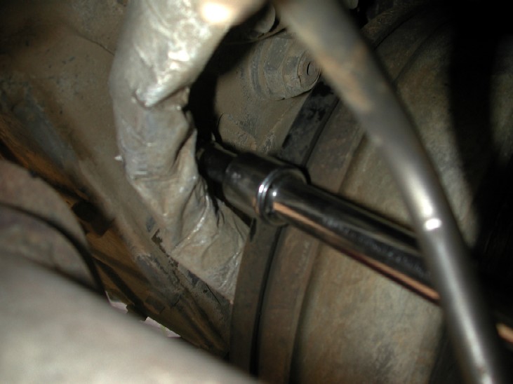 Now, because of where the fill plug is, you cannot get “straight” onto it with a half-inch extension/ratchet. I used a small 1/2 ” drive “wobble” extension, which allows you to get on the plug at an angle to undo it.