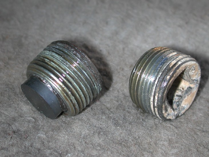 This is the easy way to tell the 2 plugs apart. The fill plug has no magnet on it. Below are the two plugs. The drain plug is on the left.
