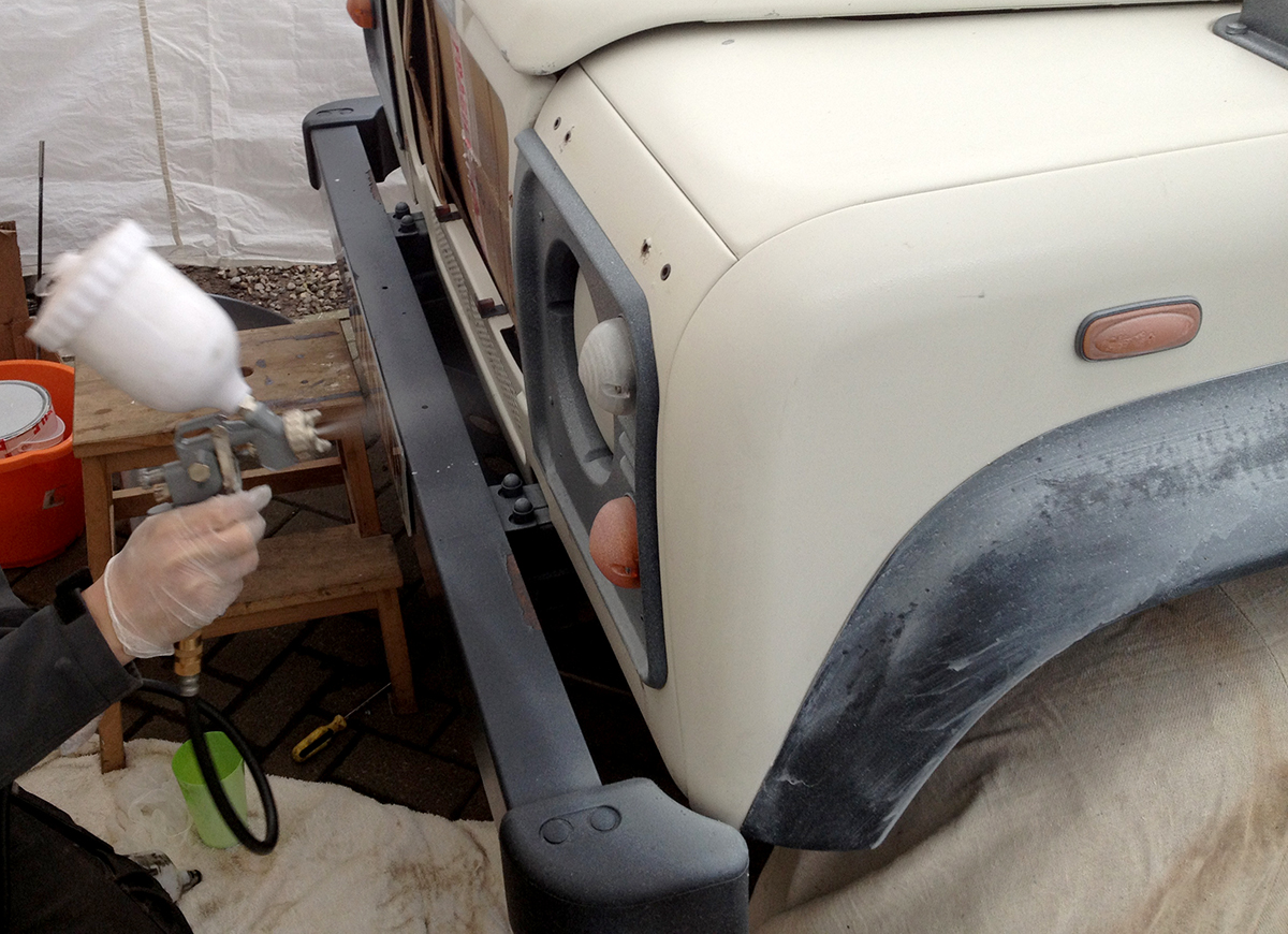 We used a strong traffic film remover to wash, scrub and really clean the Land Rover all over. You need to get into the nooks and crannies as Plastidip cannot stick to dirt, just like any paint. Leave the bodywork to dry fully, or dry using an air compressor.