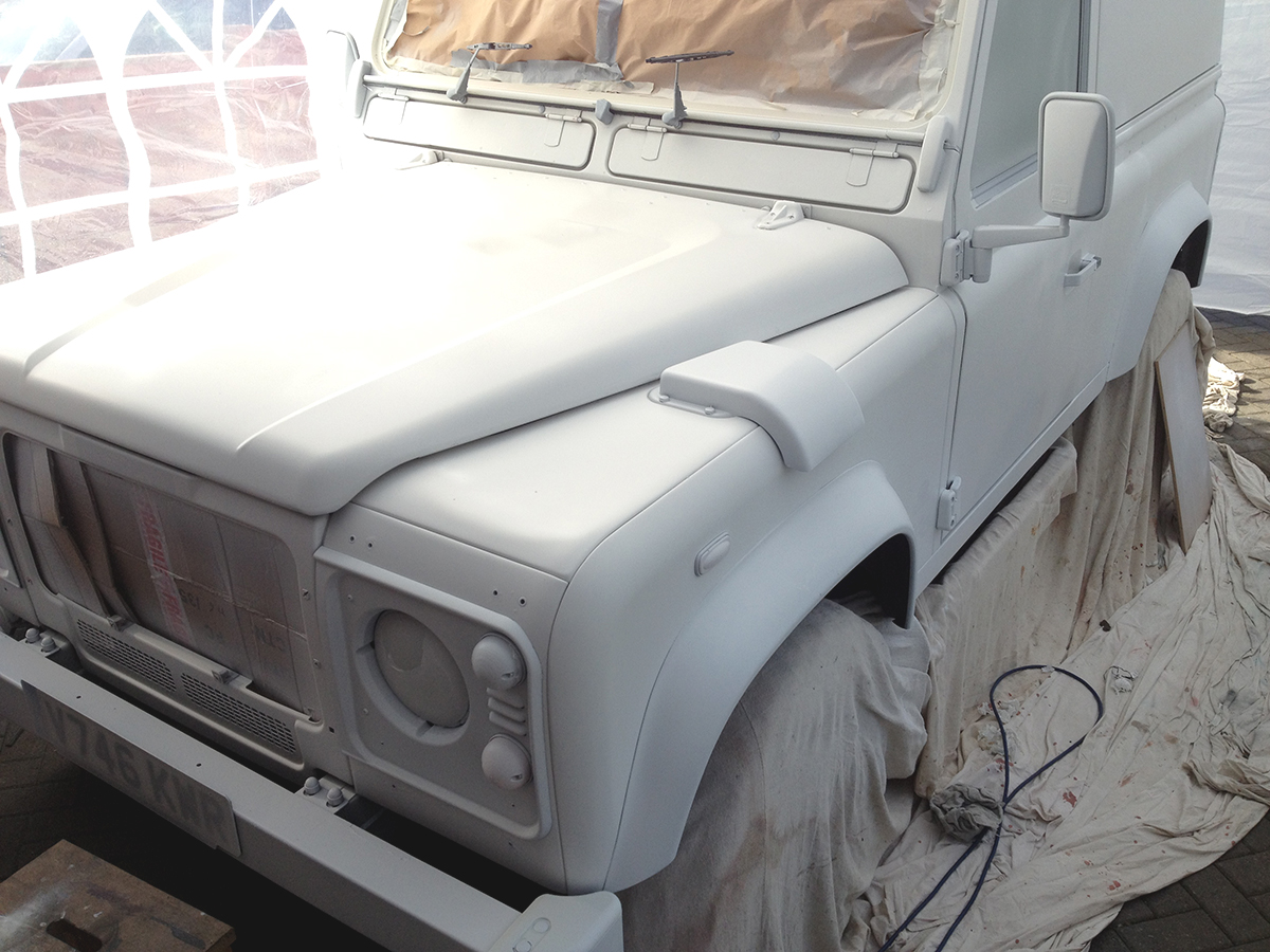 Here we’re laying down a mist coat first. This first layer needs to be light, with about 50% transparency. It allows the following layers to bond to the body and creates a tougher coating. When spraying, work methodically on each panel. Spraying panel per panel allows a quicker application, as one area can be drying whilst you’re painting another. Spray around 15cm away from the surface. A coat should be dry within 15-30 minutes, dependant on the weather and conditions.