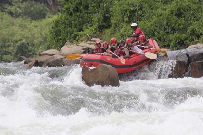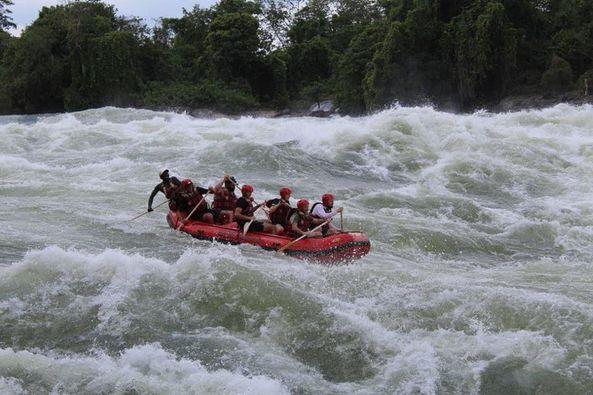 Our new (now expedition-hardened) Irish friends David, Aidan and Rayan get to experience one of Africa’s most thrilling adventures – a fitting ending to their father-and-son odyssey. We’d spent the day before at the HELP school in an impoverished community on the outskirts of Jinja, which the Kyne family have supported for years, not only sponsoring pupils right through to the end of their education but also helping to secure and improve the school’s premises and quality of teaching. They’d never met their adopted Ugandan sons and daughters before so it’s a very emotional moment as they come face-to-face, especially for 16yr-old Aidan, who’d even sold his toys as a young kid to raise funds for their education and has never stopped communicating and fundraising since then.