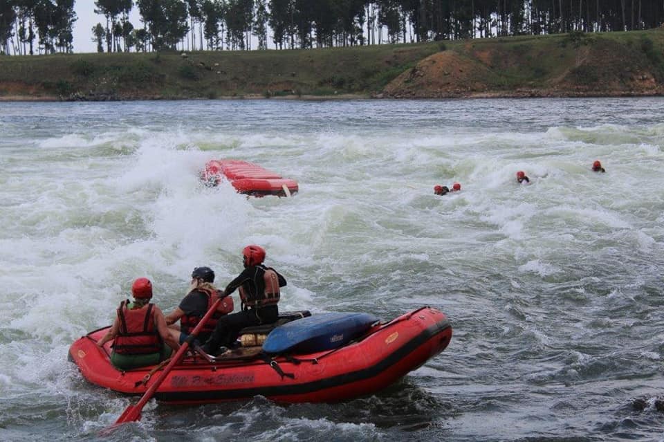 The Nile is pumping out of Lake Victoria at levels not seen in decades as the expedition team tumble out of the Defenders after weeks of humanitarian work and mud-and-rain adventure since leaving South Africa, swapping dirty, well-worn kit for swimming togs, life jackets, helmets and white-water rafts. Into the fast-flowing river, we go for an unforgettable adrenaline rush, riding the rapids with Nile River Explorers’ experienced team. Juma the leader shouting orders, paddles stabbing in unison at the wild white water, whooping, swooping, plenty of dunkings and total boat flips – it’s an exhilarating river journey down the Victoria Nile and an epic start of a new geographic objective for this Defender Transcontinental Expedition.
