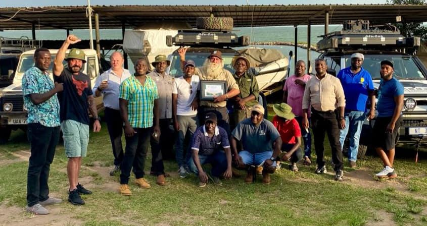 What a send-off! And a reminder once again of the camaraderie and solidarity around the iconic Land Rover brand. It all happens at the very jolly Entebbe Sailing Club on the shoreline of Lake Victoria. A long line of colourful old Defenders greet us with nicknames like Trojan 1, Beast, The Loyal Knight, Roxy, Ocece (the dusty one), Pheonix and Smoking Gun, and their equally colourful owners. Ronnie Kyazze the Chairman gives us honorary membership and we’re presented with Defender Transcontinental Expedition bush hats, a framed certificate and expedition-branded travel mugs! We share stories and listen to their comments like, ‘Even though I slow up others in the traffic, I love the fact that I still get waves. – Ugandans love these old Landies’; ‘I take mine everywhere, even into the Congo’; and ‘We love them, especially the old Tdi’s – the growl of that dependable old 300 Tdi engine and the smell of hot oil.’