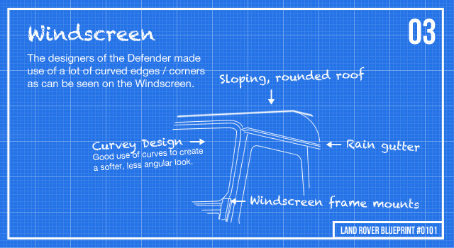 The design of the Defender is quite complicated, with rain gutters, seals, seams, hinges, rivets, door mirrors and general screws dotted about and yet it still manages to look quite minimal and simplistic. We love the subtly curved windscreen mounts and that rain gutter (complete with a tiny, pizza shaped notch to drain water). There’s nothing on a Defender that doesn’t perform some sort of function, or at least offer practical value.