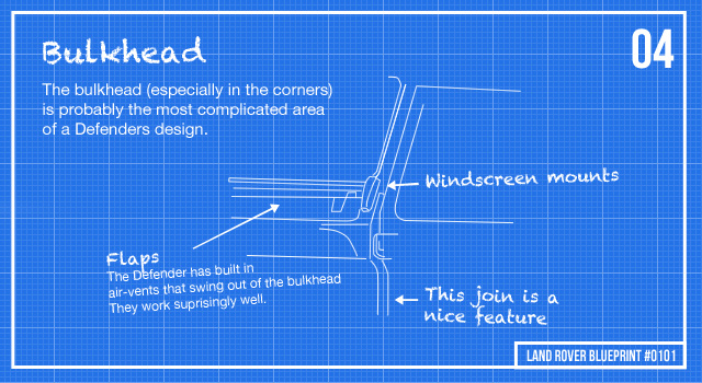 The bulkhead corners are one of worst places to get rust, but they are also one of the most intricate and detailed. Lot’s of curves meet here to create the sub-structure. The Defender designers clearly were inspired by Land Rovers of old.