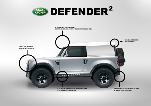 So, we’ve assembled the most iconic shapes and panels of a Defender, to try and help Land Rover incorporate a little more of the past and hopefully win over Landy nuts.